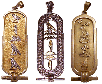 Every Egyptian Pharaoh and Queen had a Cartouche which spelt out their name in hieroglyphics. This Cartouche was designed as an oval shaped loop of rope with a knot. It symbolized everything that the sun encircled and was an indication of the Pharaoh's rule of the universe.